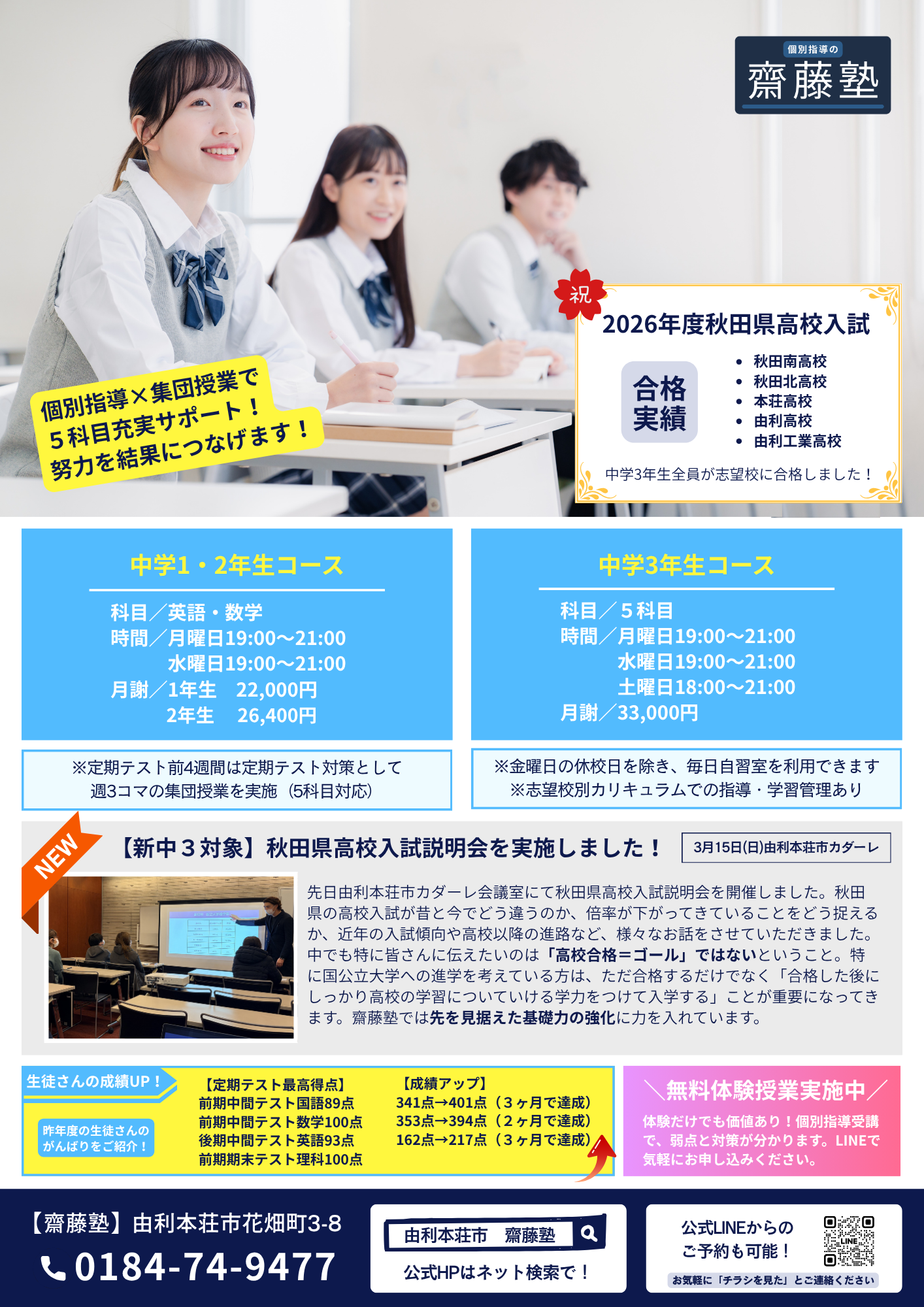 齋藤塾は、由利本荘市の中学生を対象とした個別指導塾です。